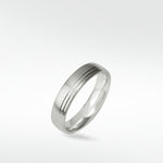 Classic and clean, this simple yet stylish wedding band is definitely one you will not want to take off. Crafted in a comfortable court shape with a brushed finish and linear detailing, for a timeless design. Available in white, rose or yellow gold, or platinum, and also a variety of widths, just get in touch for a personalised quote.
