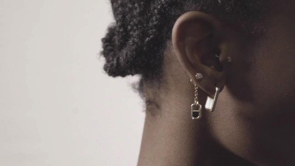Choose your side with these Eclipsis Diamond Hoop Earrings - mother of pearl or black onyx? Do you prefer the brightness of the sun or the shadows of the moon? Maybe your mood will change as you go about your day? If so, no matter, our Eclipsis range is all about mixing it up - once a day, once a week? You do you. From the front, these abstract hoops offer a stunning, diamond-set view for the ultimate in new luxury.
