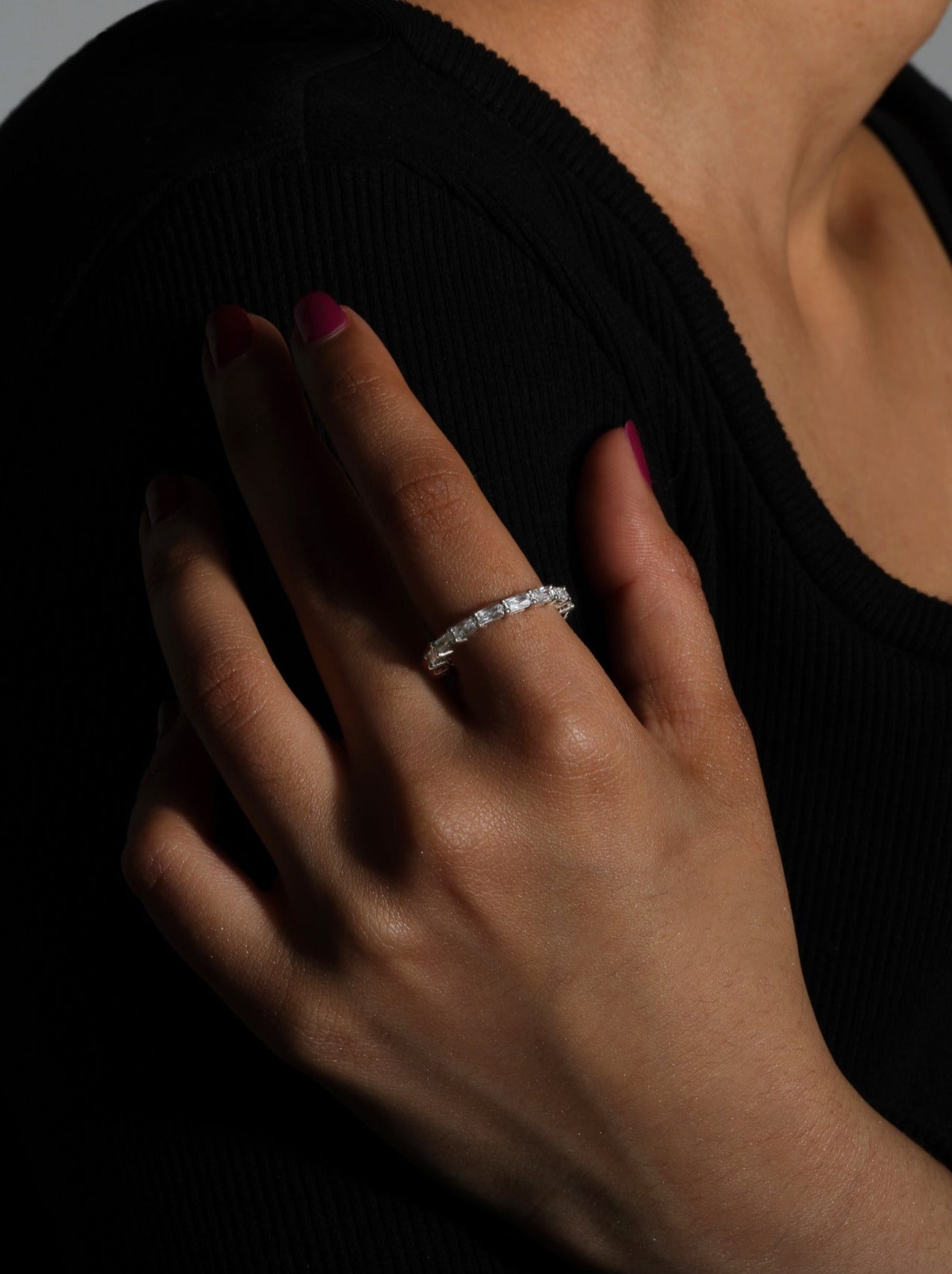 Delicate diamonds lay together and surround you in this delightful Hornbeam Full Eternity Ring. With baguette stones creating a landscape around your digits, this modern twist on a traditional ring is the coolest thing you can wear on your hands.
