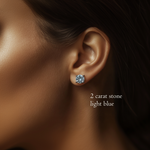 Lime Blue Diamond Stud Earrings Brilliant Round Cut