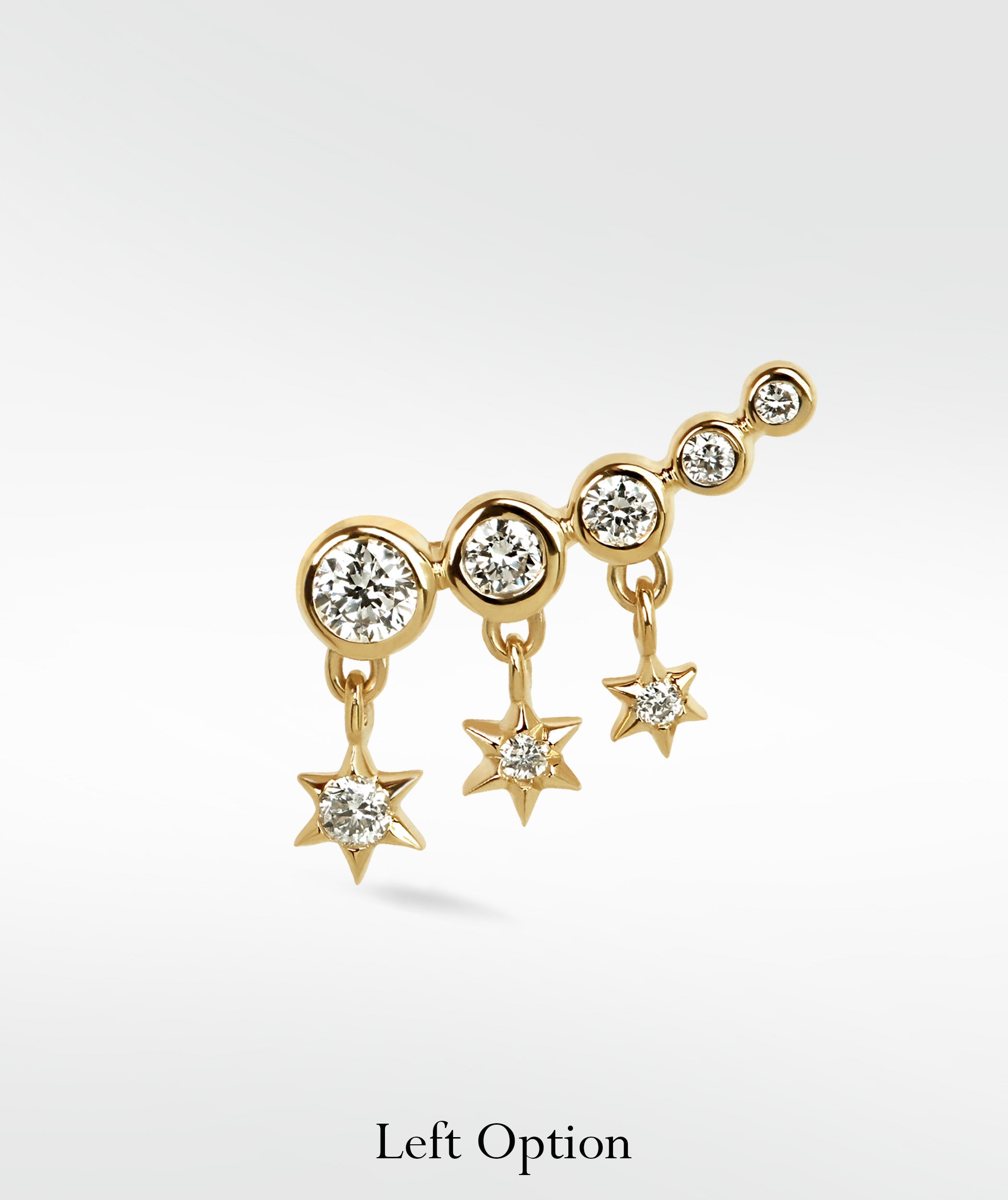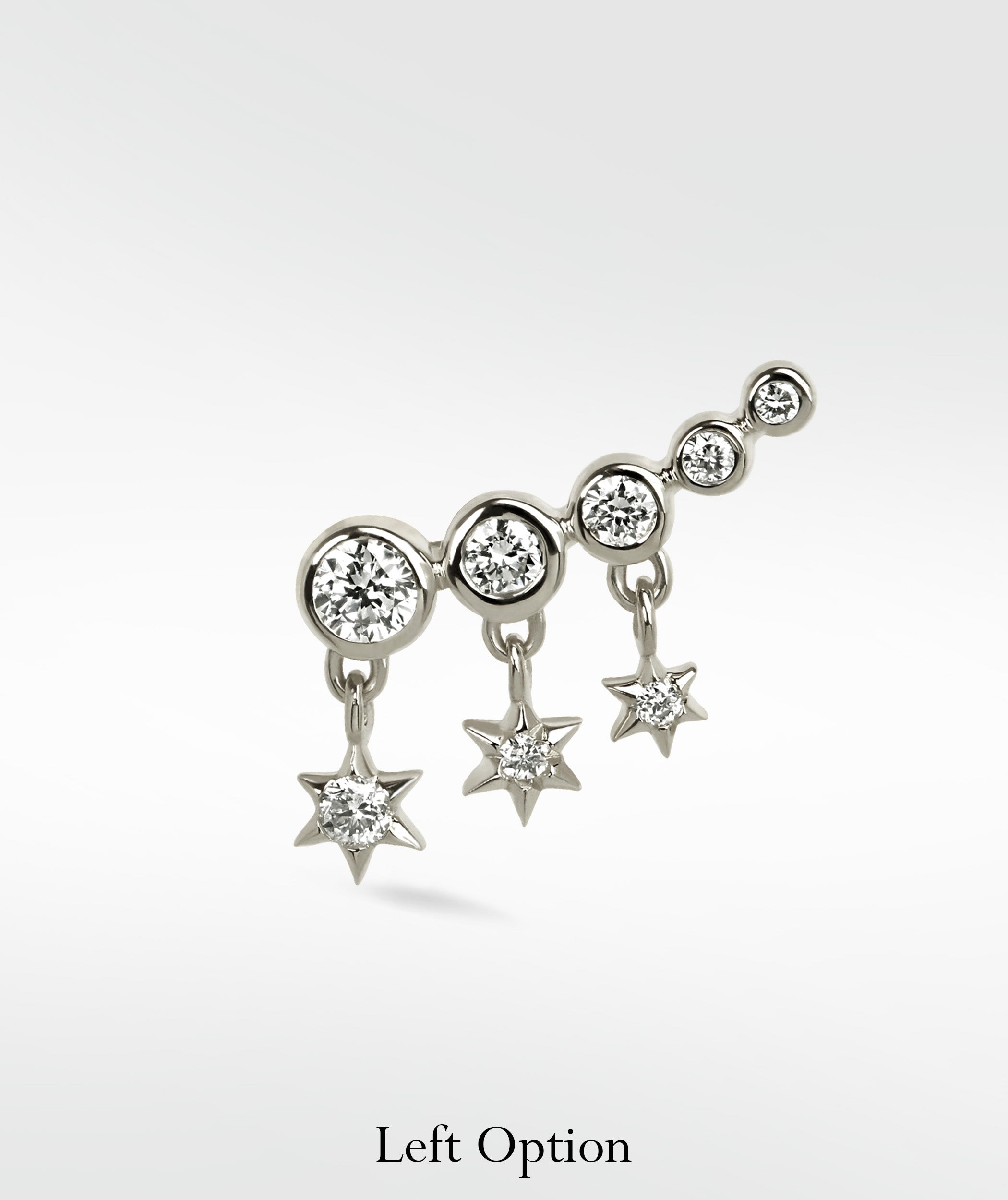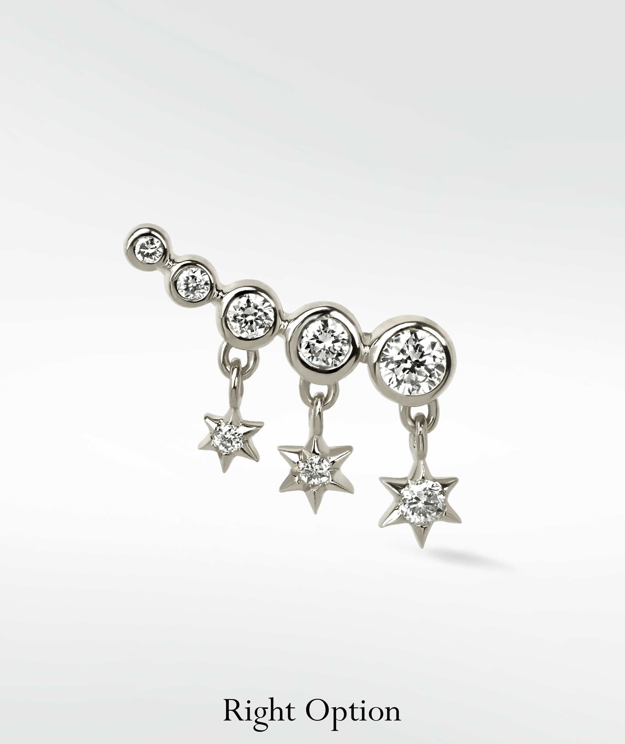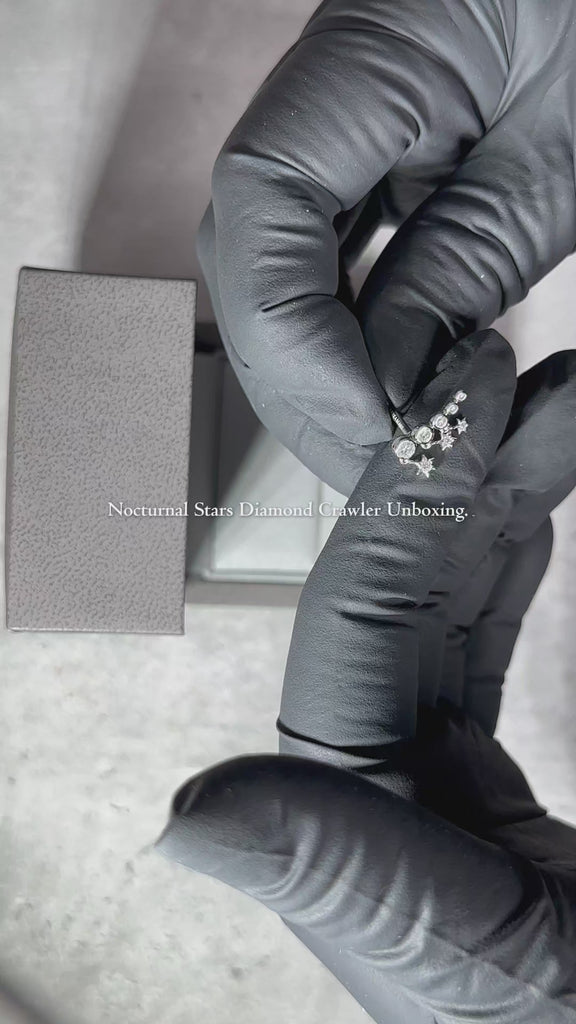 Celestial charm meets timeless elegance in this Nocturnal Stars Diamond Crawler Stud, featuring ethical lab-grown diamonds for a regal touch of sophistication and allure.