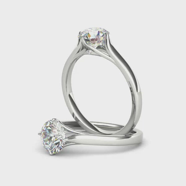 Add this setting to cart then choose your diamond below. The ring pictured is a size UK Q (US 8 1/4) with a 1ct Brilliant Cut diamond centre stone.