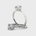 Add this setting to cart then choose your diamond below. The ring pictured is a size UK H (US 4) with a 1ct Cushion Cut diamond centre stone.